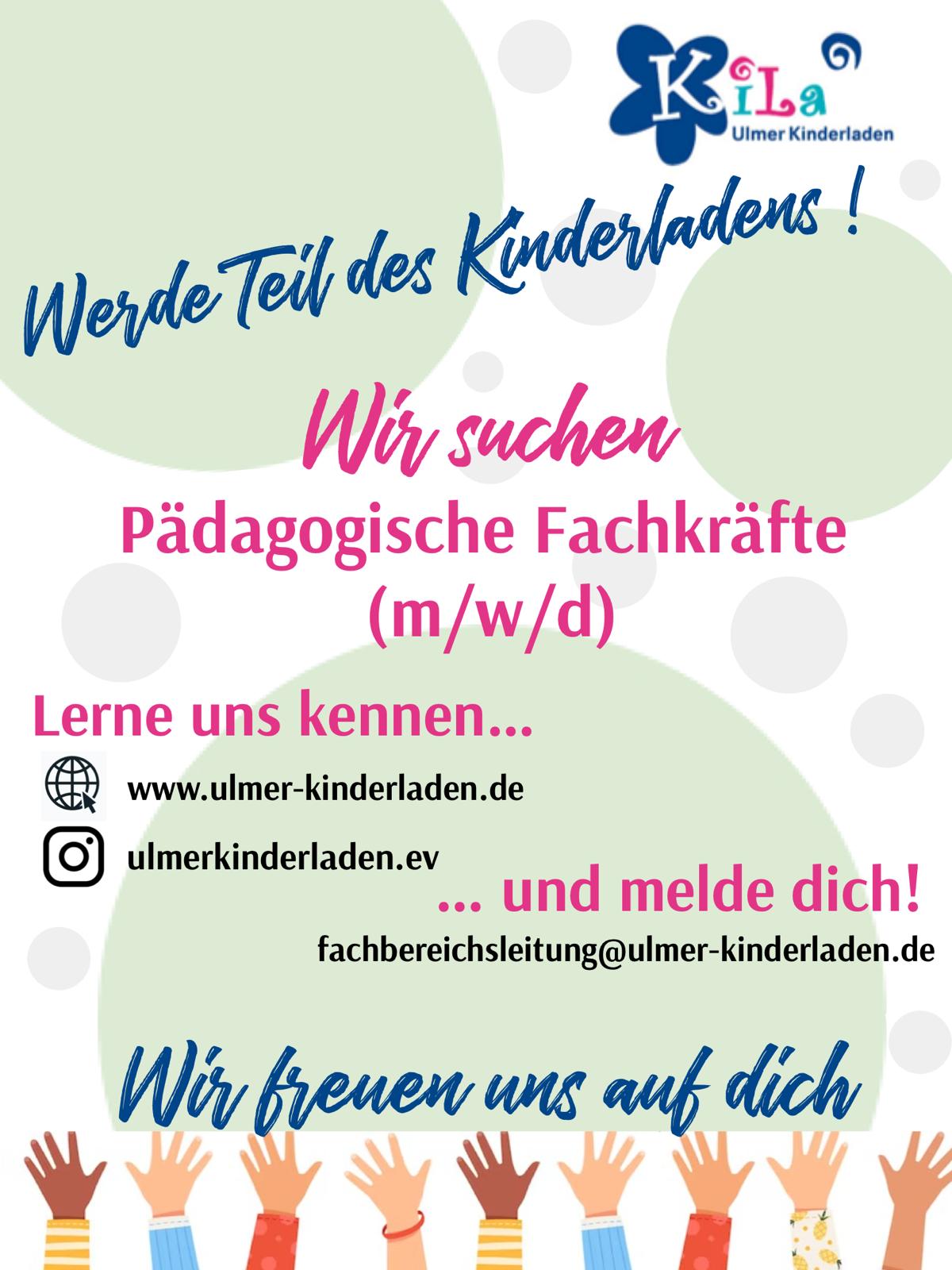 Wir suchen zum nächstmöglichen Zeitpunkt pädagogische Fachkräfte für unsere unterschiedlichen Trägereinrichtungen!